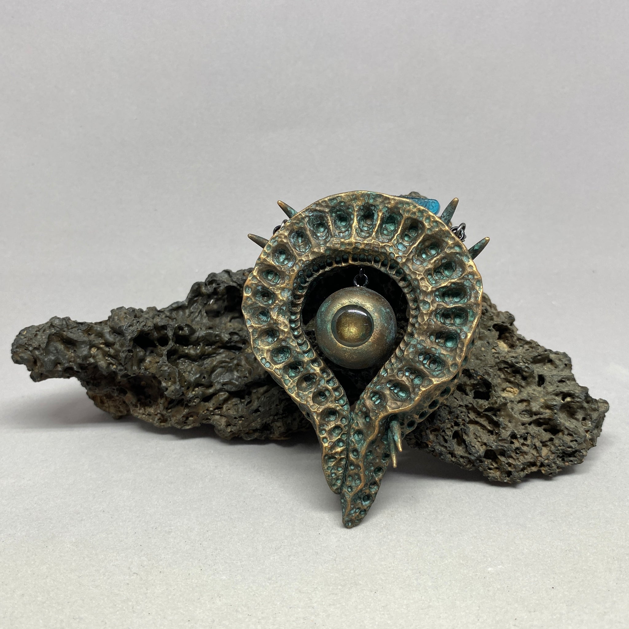 This creepy cool pendant is an art statement you can wear. Cast from my original sculpture then lovingly hand painted.
