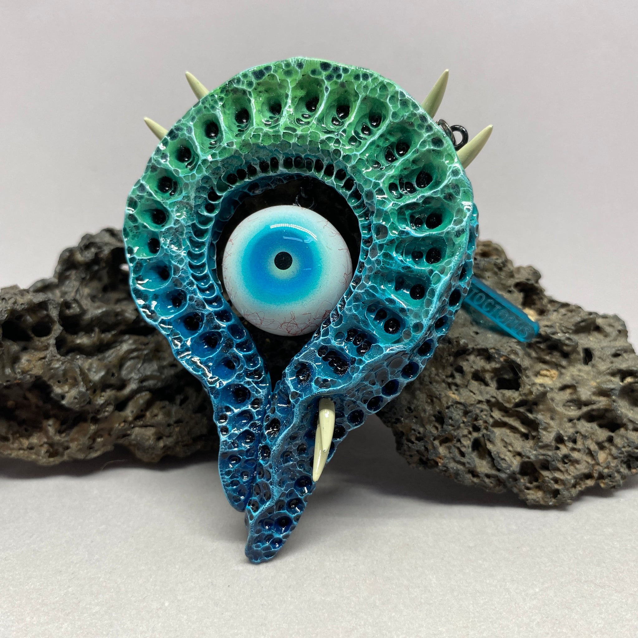 These creepy cool pendants are art you can wear. Cast from my original sculpture then meticulously hand painted and sealed with a heavy duty gloss for protection and shine. Each one is unique and no two will ever be exactly the same.